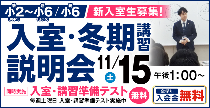 ・新学年準備講座無料(新小3・小4,10月~翌年1月)