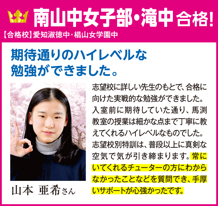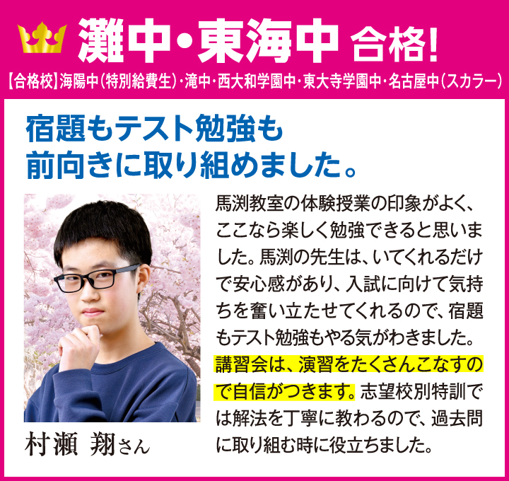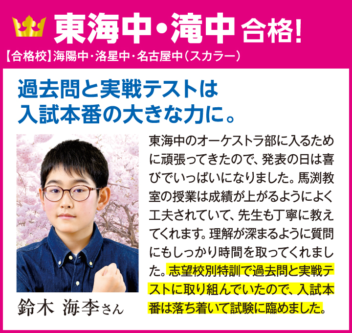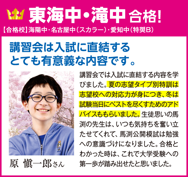 馬渕の「学校別専門プロジェクトチーム」が導く東海最難関3中学合格